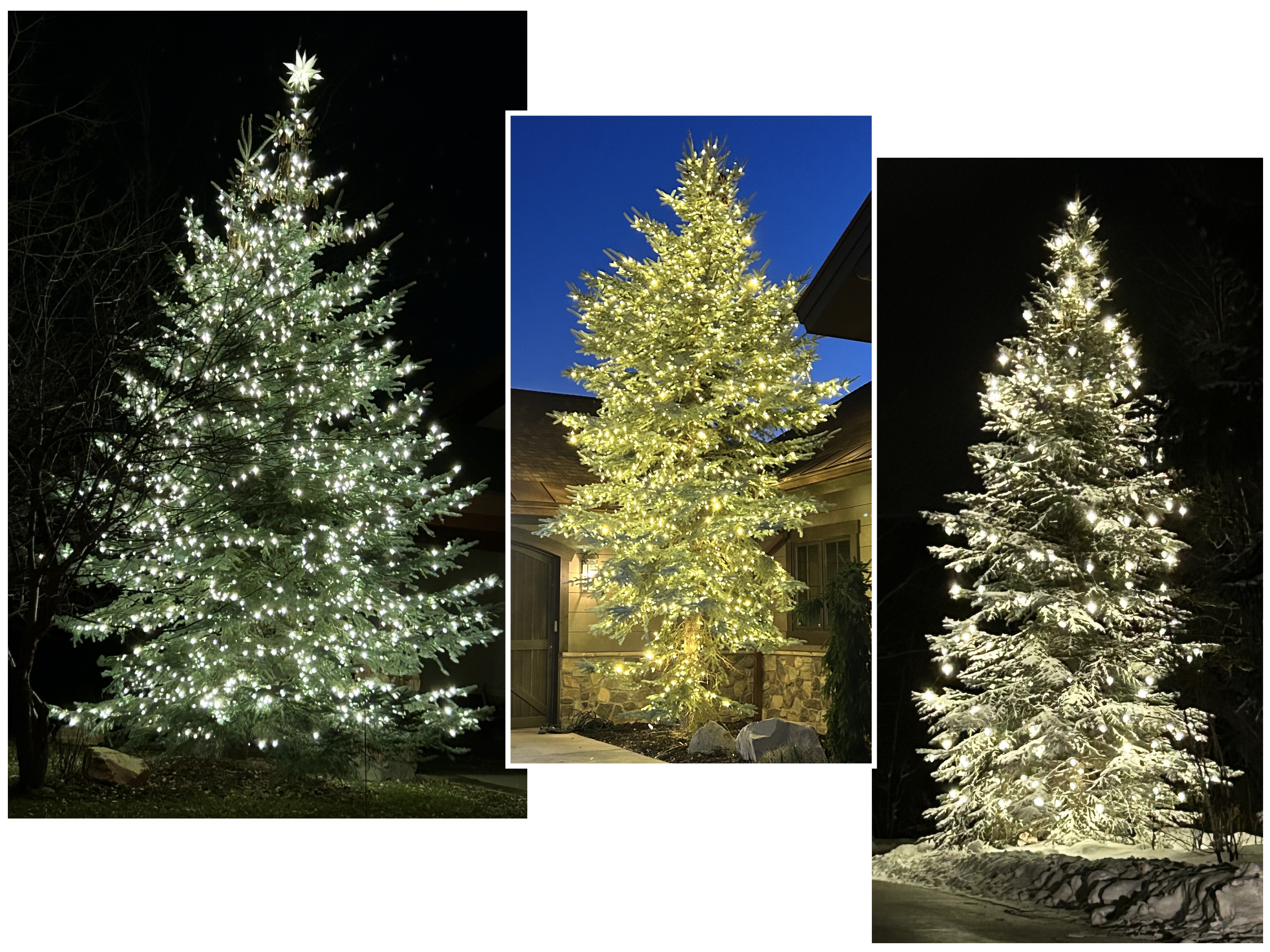 We can light all forms of rooflines, trees, bushes, columns, wreaths, windows and more. If you want it, we can make it look great.